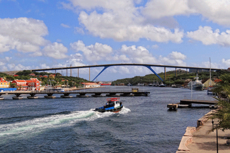 • Queen Juliana Bridge, Willemstad. At 185 feet, this is highest bridge in the Caribbean (and one of the tallest bridges in the world.) The bridge overlooks St. Anna Bay as well as Willemstad. Note: The observation platform has been closed to pedestrian traffic.